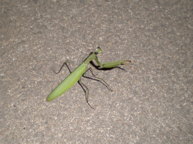 Eine Gottesanbeterin - so was haben wir noch nie gesehen! Sie spazierte, nein stolzierte regelrecht des nachts über die Strasse und lies sich fotografieren und bestaunen, fantastisch, amazing, würde Sinisha sagen!!!